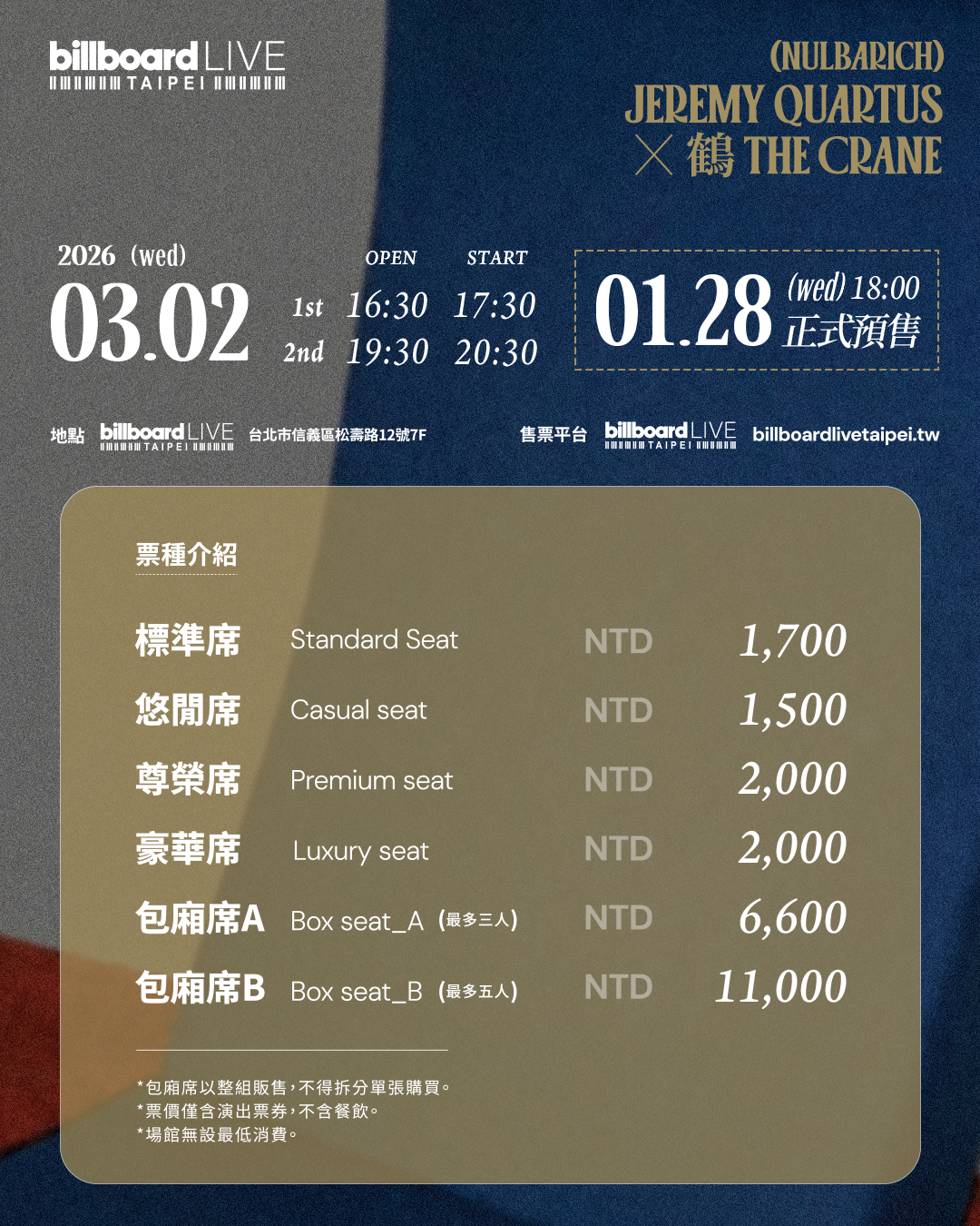 「Jeremy Quartus (Nulbarich)× The Crane」@Billboard Live TAIPEI