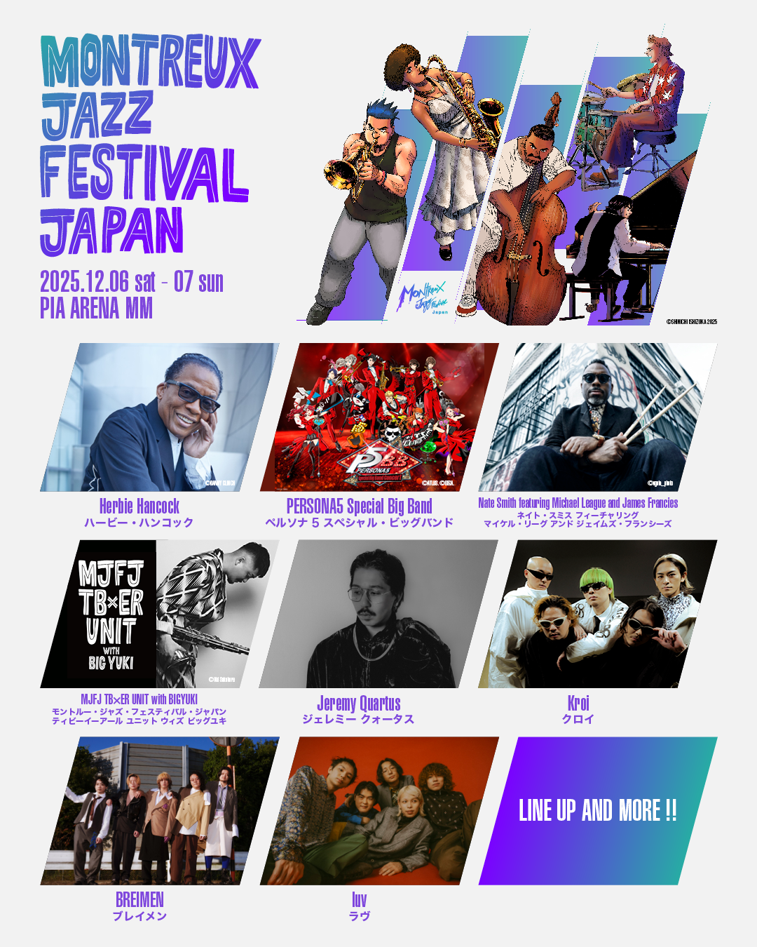 12/6(土)に開催する「MONTREUX JAZZ FESTIVAL JAPAN 2025 -JAPAN ARTISTS EVE SHOW-」、12/7(日)に開催する「MONTREUX JAZZ FESTIVAL JAPAN 2025」の出演が決定いたしました。