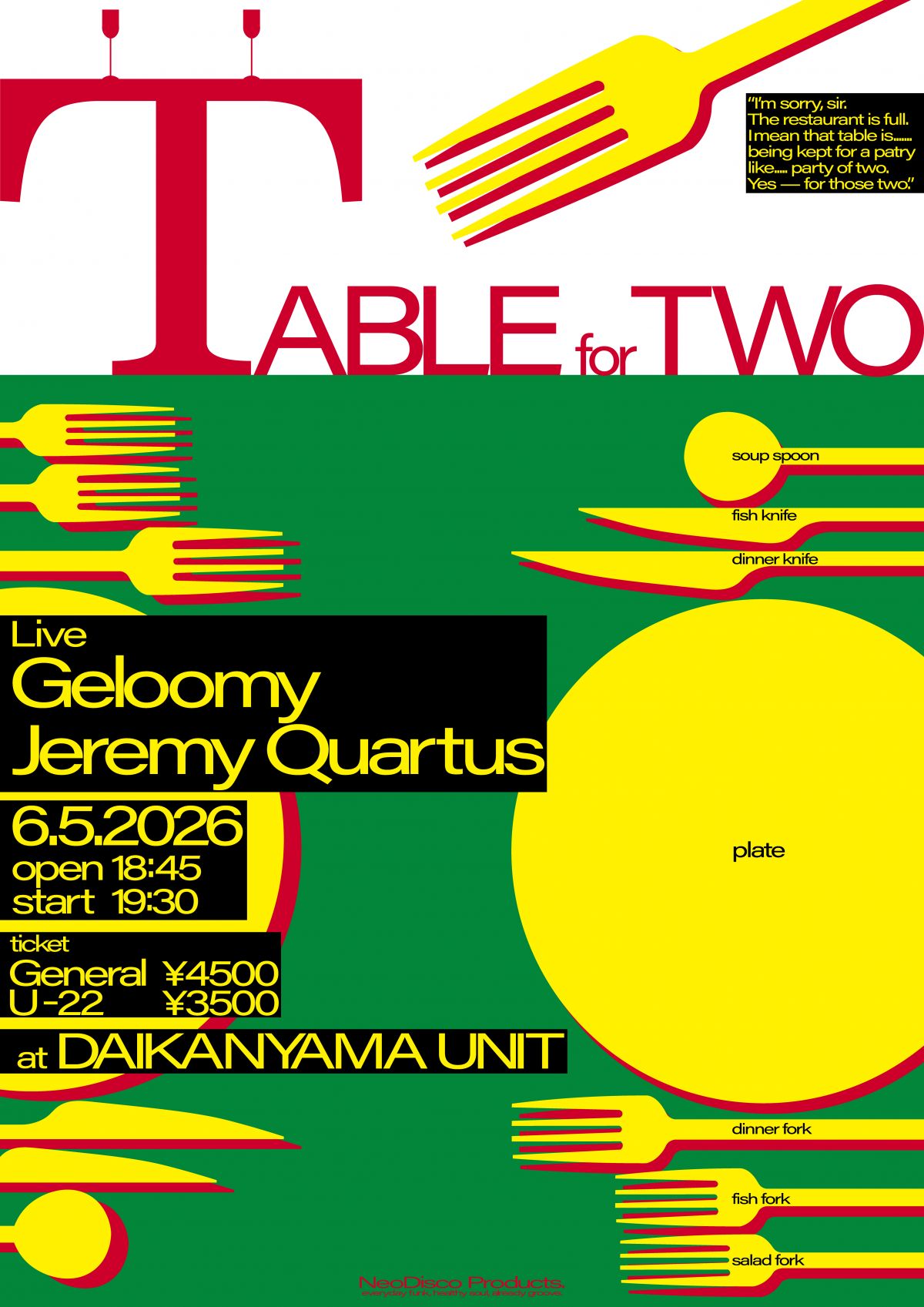 Geloomy主催の「TABLE for TWO」に出演決定!